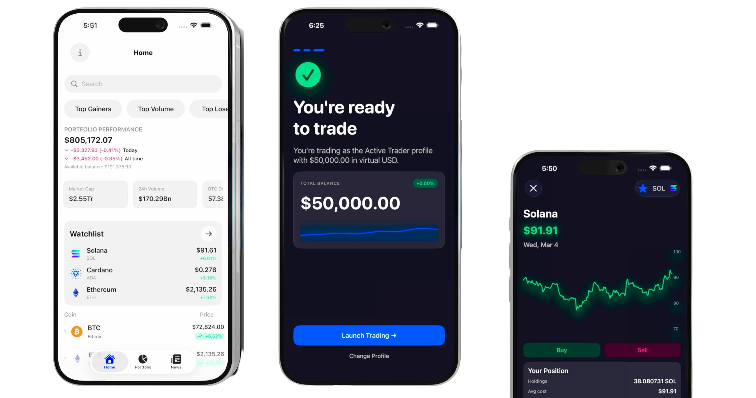 A live App Store iOS crypto simulator — real-time market data, simulated trade execution, portfolio tracking, and a full paper-trading engine. Built solo end-to-end: concept, SwiftUI engineering, Core Data persistence, App Store submission, and public launch.
